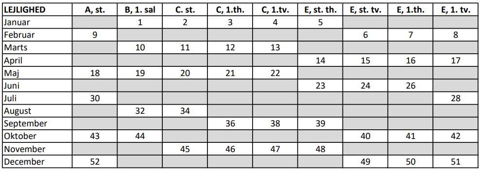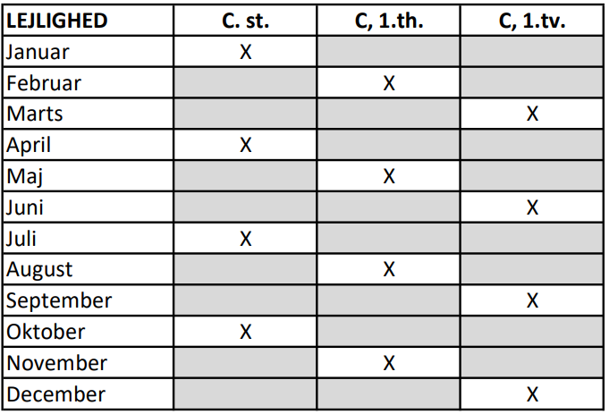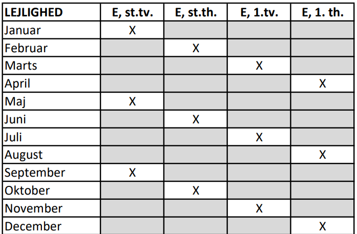 Er man af én eller anden grund forhindret, må man bytte med en af de andre beboer.